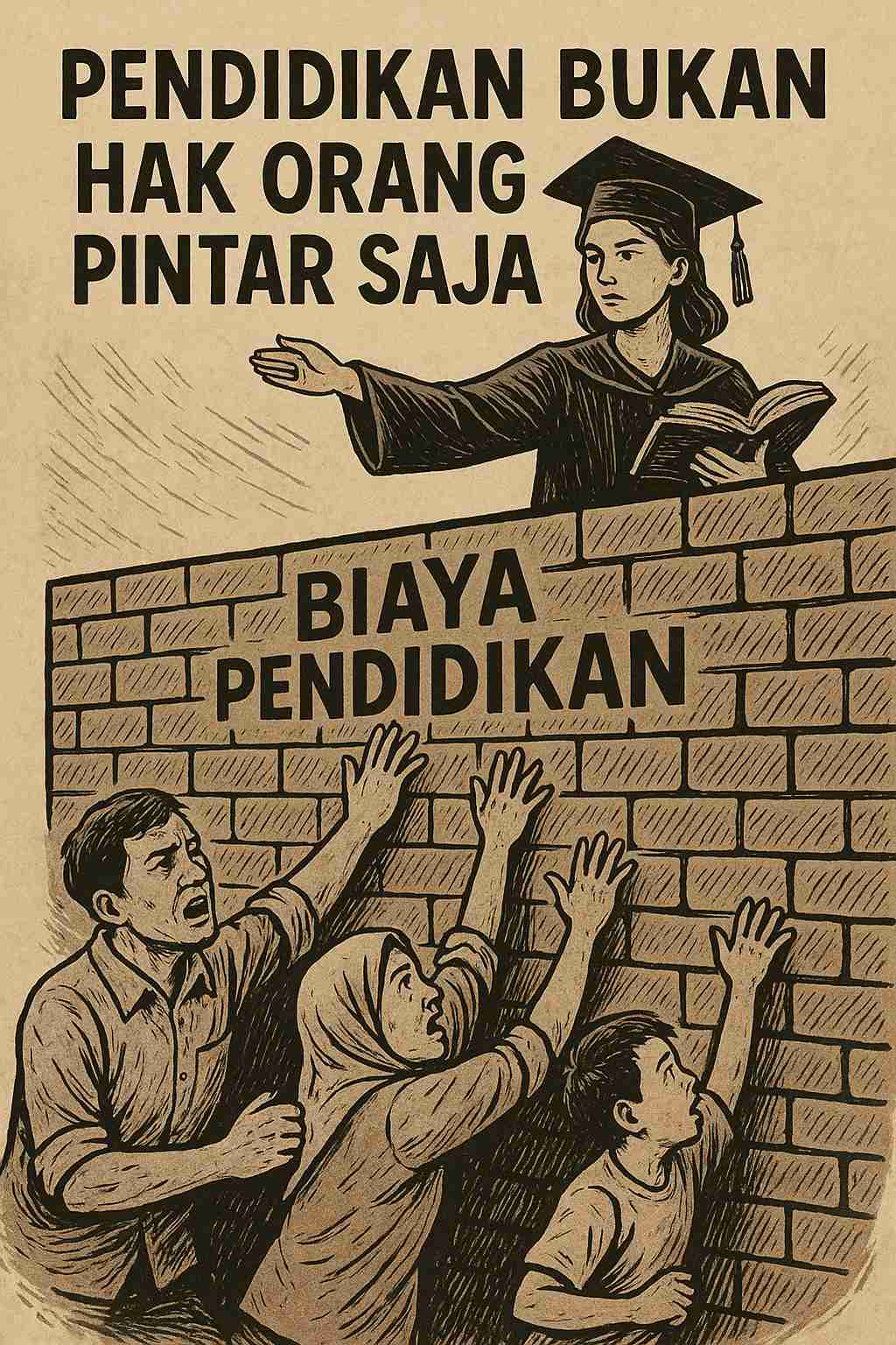 Padahal, tidak semua orang diberi kecerdasan yang sama, tapi semua orang berhak mendapat pendidikan yang layak. Rakyat tidak menuntut makan gratis. Rakyat tidak minta hidup mewah. Yang mereka minta sangat sederhana: pendidikan yang bisa dijangkau oleh penghasilan mereka yang sederhana.